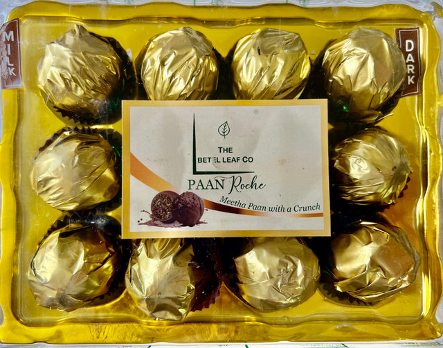 - Crunch of Rocher wafer center filled with meetha paan, hand rolled in fine Milk Chocolate